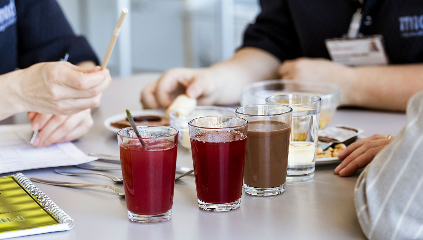 Et slurv fra gulvvaskemaskinen nede ad gangen, kolleger på vej til konference – men herinde står tiden stille. En summende ro fylder rummet, hvor bakken foran ergoterapeuten er gjort klar med suppe med kød og melboller, rugbrød med pålæg og italiensk salat, kiks, nutella, æble, grød og drikkevare med forskellige konsistenser. Et måltid bestående af et bredt udvalg af mad indenfor alle konsistenser som skal testes.